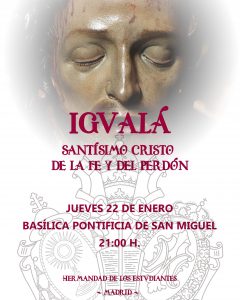 El próximo jueves 22 de enero, D.M. tendrá lugar en la Basílica Pontificia de S. Miguel a las 21:00 la igualá de costaleros del paso de nuestro Señor el Stmo. Cristo de la Fe y del Perdón